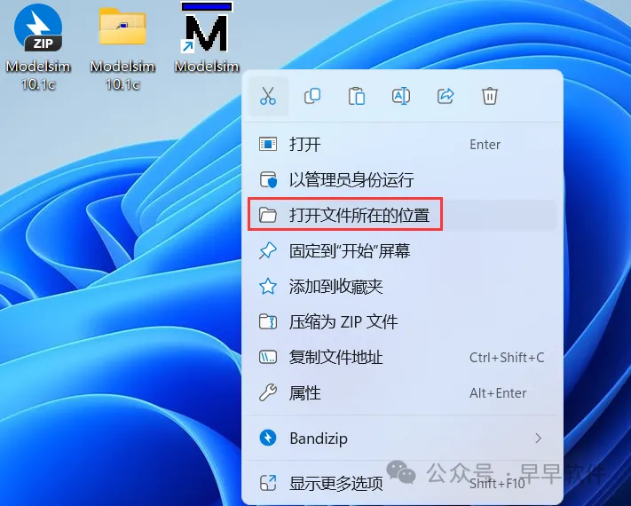 18、右键桌面上的【Modelsim软件图标】,点击【打开文件所在的位置】
