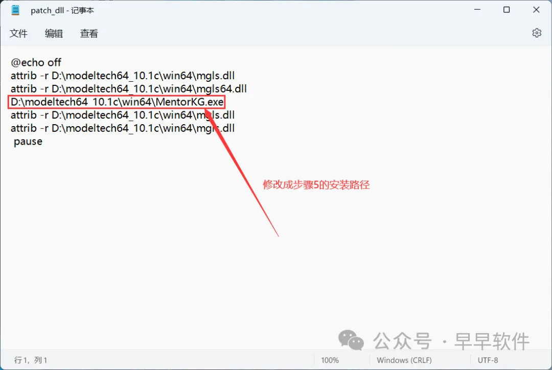 22、第四行修改成步骤5的软件安装路径,修改后保存文档。若与教程一致,则无需修改
