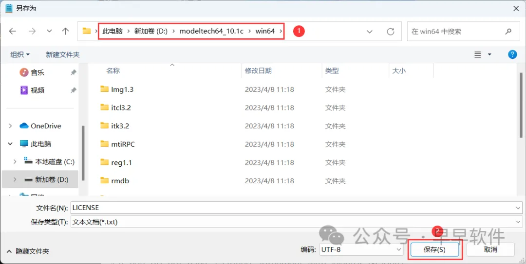 25、将文件保存在步骤5的路径位置:D:\modeltech64_10.1c\win64,再点击【保存】