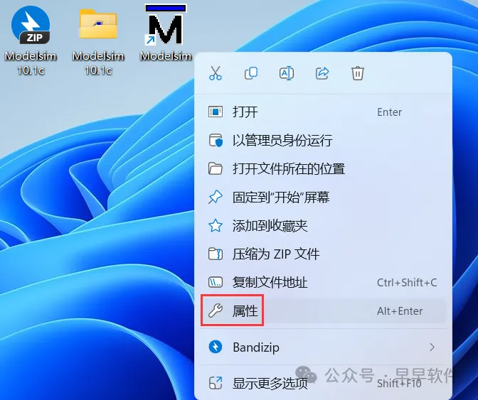 35、回到桌面,右键【Modelsim软件图标】,点击【属性】