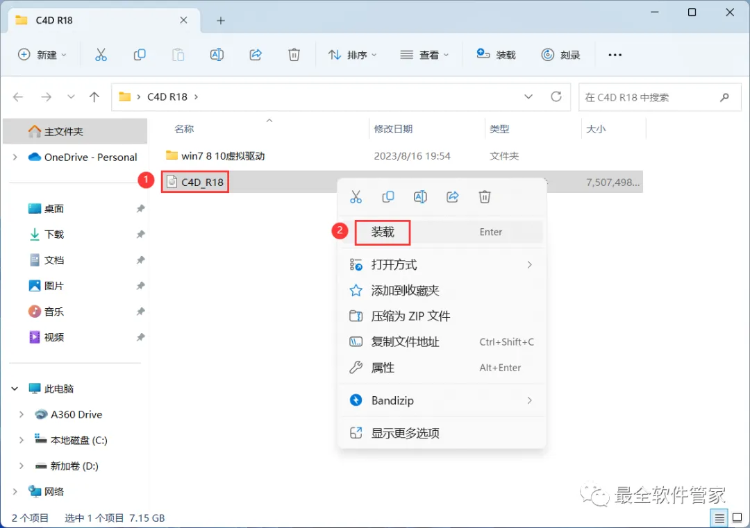 3、找到【C4D_R18】文件,右键点击【装载】