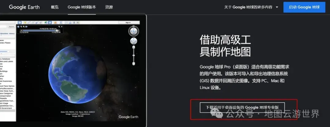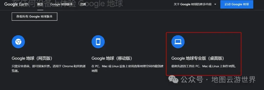 步骤 2:单击桌面版 谷歌地球专业版按钮开始下载。