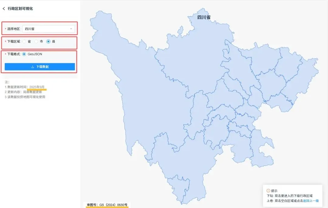 分享:免费下载最新的带审图号的省、市、县级行政区划数据
