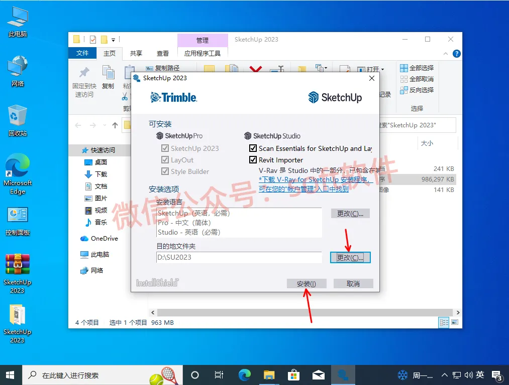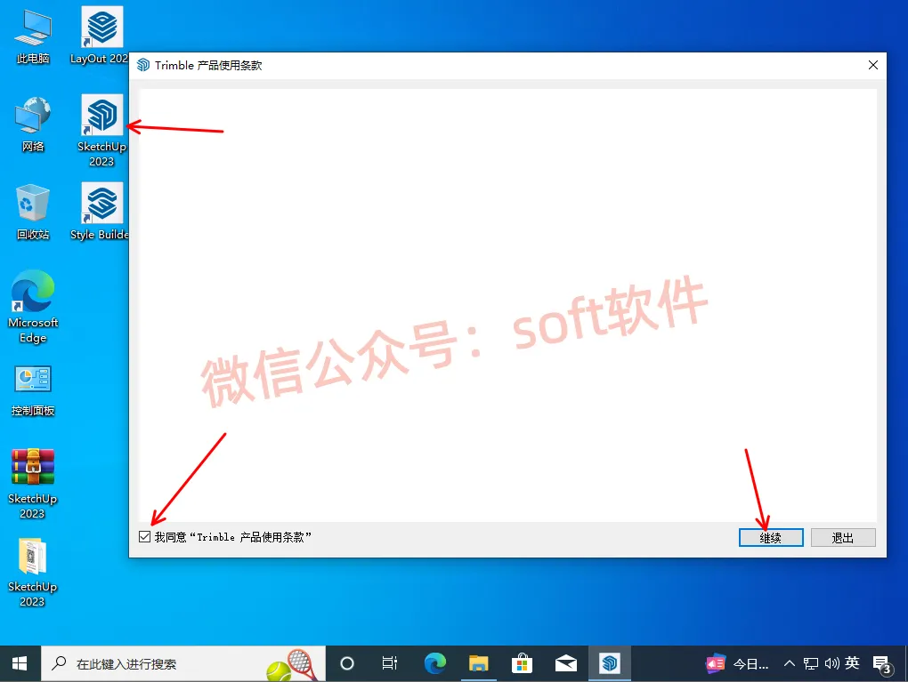 9,打开桌面SketchUp 2023,勾选我同意,点继续