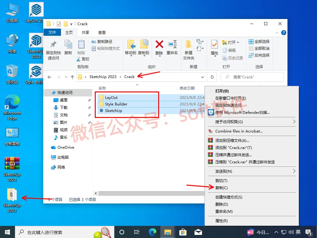 6,打开第一步解压的文件夹,找到Crack里面的三个文件,全部选中,右键复制