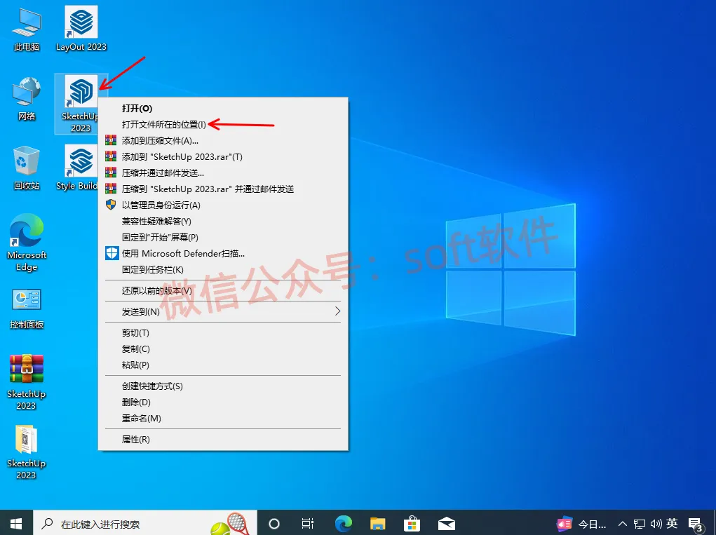 7,回到桌面,找到主启动程序SketchUp2023,右键打开文件所在位置