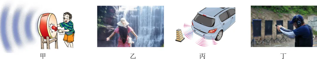 B. 乙图:人听到瀑布