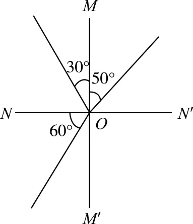 A. 入射角等于30°B. 折射角等于50°