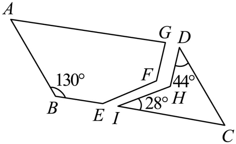 13. 小宁不小心将一块平行四边形教具打碎成两部分,通过测量,已经知道三个角的度数如图所示,则的度数为______.