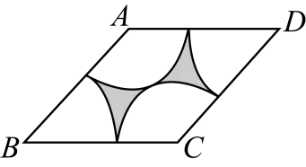 14. 如图,在菱形中,,分别以点、点、点、点为圆心,长为半径画弧分别与菱形的边相交,图中阴影部分的面积为________.(结果保留