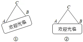 20. 如图①,将“欢迎光临”门挂便斜放置时,测得挂绳的一段cm.另一段cm.已知两个固定扣之间的距离cm