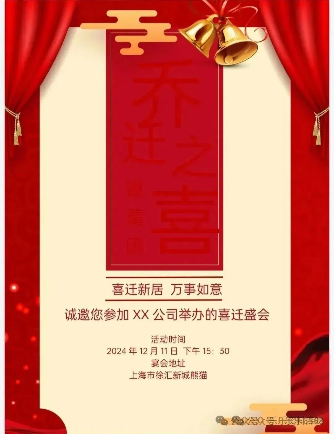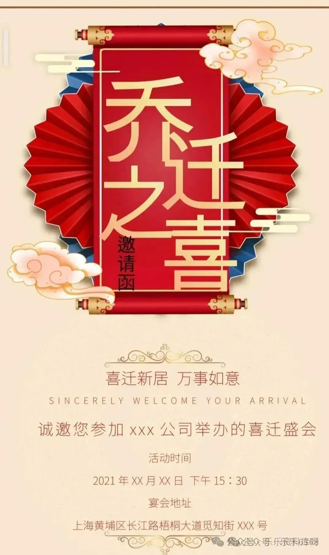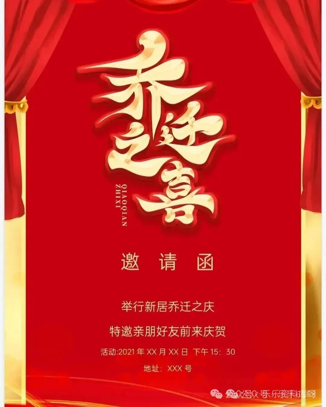 16款高颜值乔迁邀请函模板已经备好,直接下载就能改,省心又省力。不用再为排版设计费脑筋,把省下的时间用来筹备新家派对才是正事。赶紧领走模板,给亲友们递上你的乔迁邀请,一起分享这份乔迁的喜悦吧!下载链接: