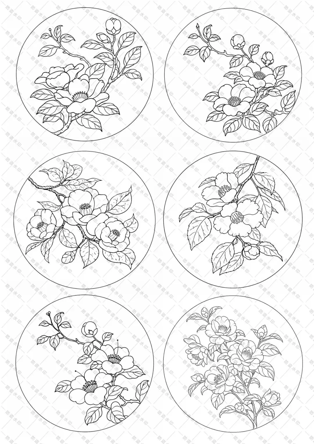 >免费资料|山茶花圆幅高清白描图集,高清图下载