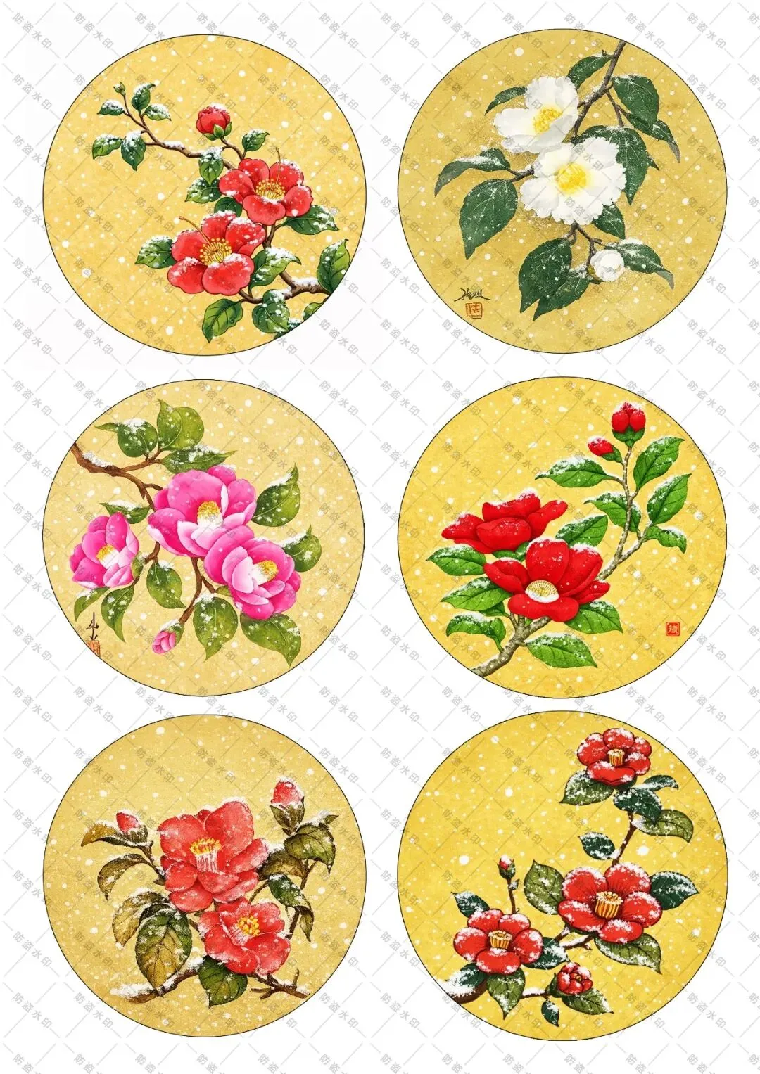免费资料|山茶花圆幅高清白描图集,高清图下载