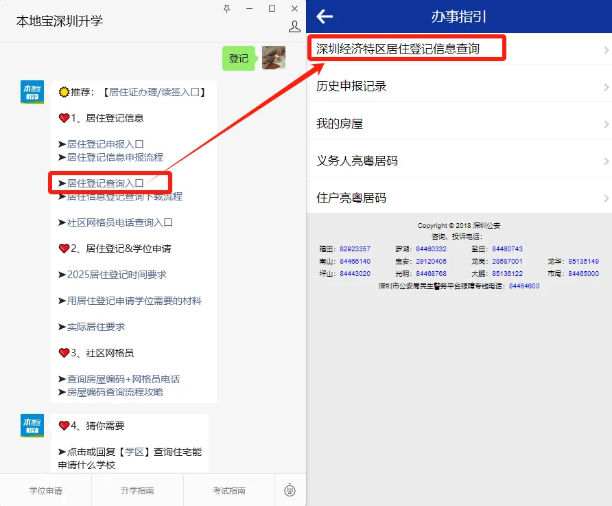 ✅第一步:微信搜索深圳公安,或者扫描下方二维码,关注【本地宝深圳升学】回复【登记】,然后点击“居住登记信息查询入口”,选择“深圳经济特区居住登记信息查询”