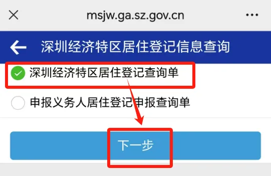 勾选“深圳经济特区居住登记查询单”,点击“下一步”