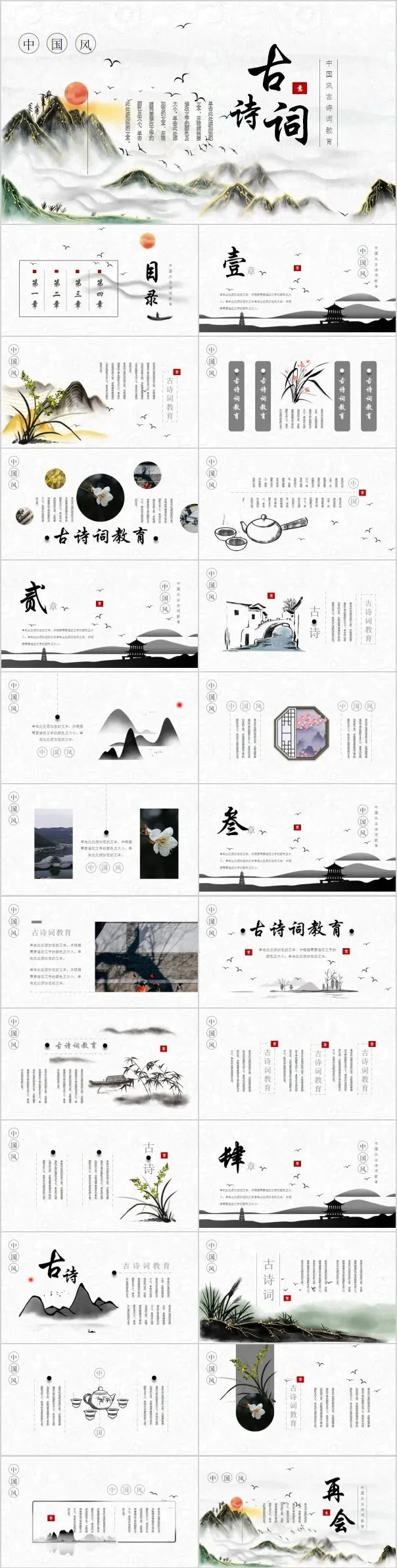 本文分享的是【中国风古诗词PPT模板】