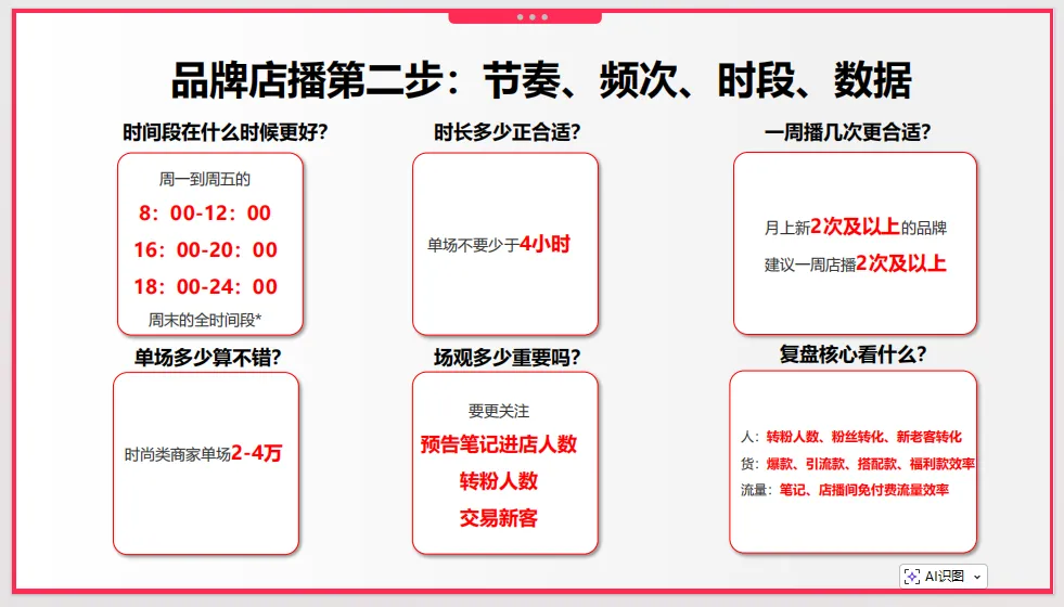 品牌店播第三步:四段进阶(单场、频次、场效、投放)