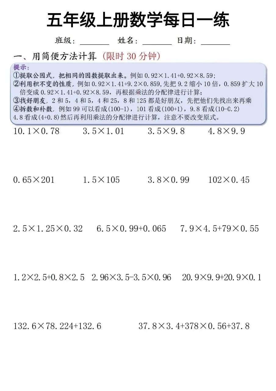 「五年级上册数学每日一练(竖式计算、简便方法计算)」链接:https://pan.quark.cn/s/94536f274fb4