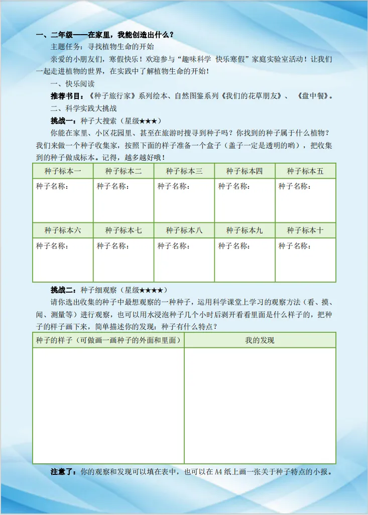 >免费下载 | 小学科学《趣味科学快乐寒假》活动实践手册(适用一、二年级)