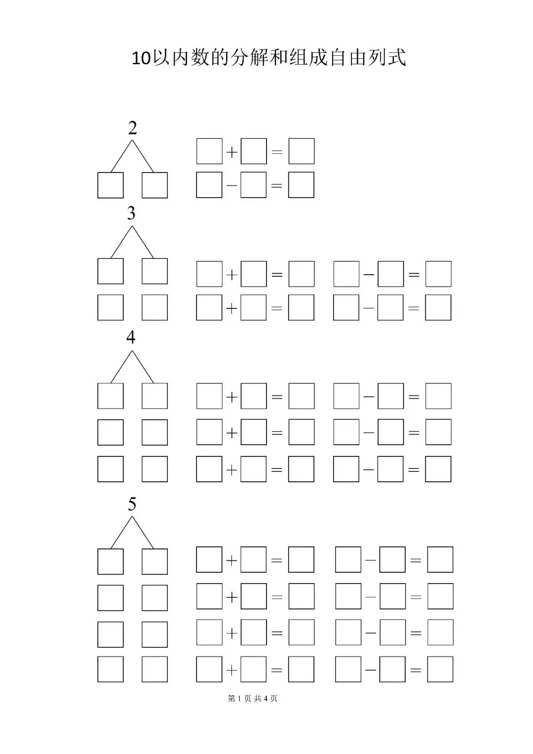 >幼小衔接 10以内数分解 PDF免费下载打印