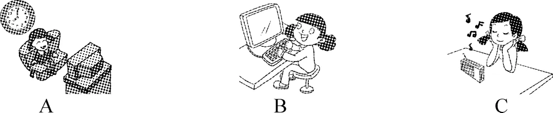 一)、听句子,选择符合句子内容的图片,每个句子读一遍。(每小题 1 分,共 5 分)