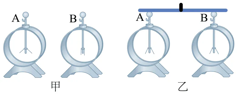3. 如图甲所示,让毛皮摩擦过的橡胶棒,使验电器A带了电,B不带电。用带有绝缘柄的金属棒把验电器A、B两金属球连接起来的瞬间(如图乙所示),金属棒中( )