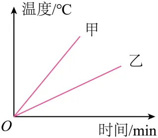 7. 质量相等、初温相同的甲、乙两种不同液体,分别用两个完全相同的加热器加热,加热过程中,温度随时间变化的图线如图所示.根据图线可知()