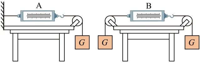 3. 如图所示,弹簧测力计和细线的重力及一切摩擦不计,物重G=1N,则弹簧测力计A和B的示数分别为( )