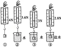 12. 如图所示,将盛有适量水的容器放在水平桌面上,然后把系在弹簧测力计下的铁块慢慢地浸入水中(水未溢出),观察铁块从刚开始浸入水中到完全浸在水中的实验现象,并对一些物理量做出了如下判断,其中正确的是( )