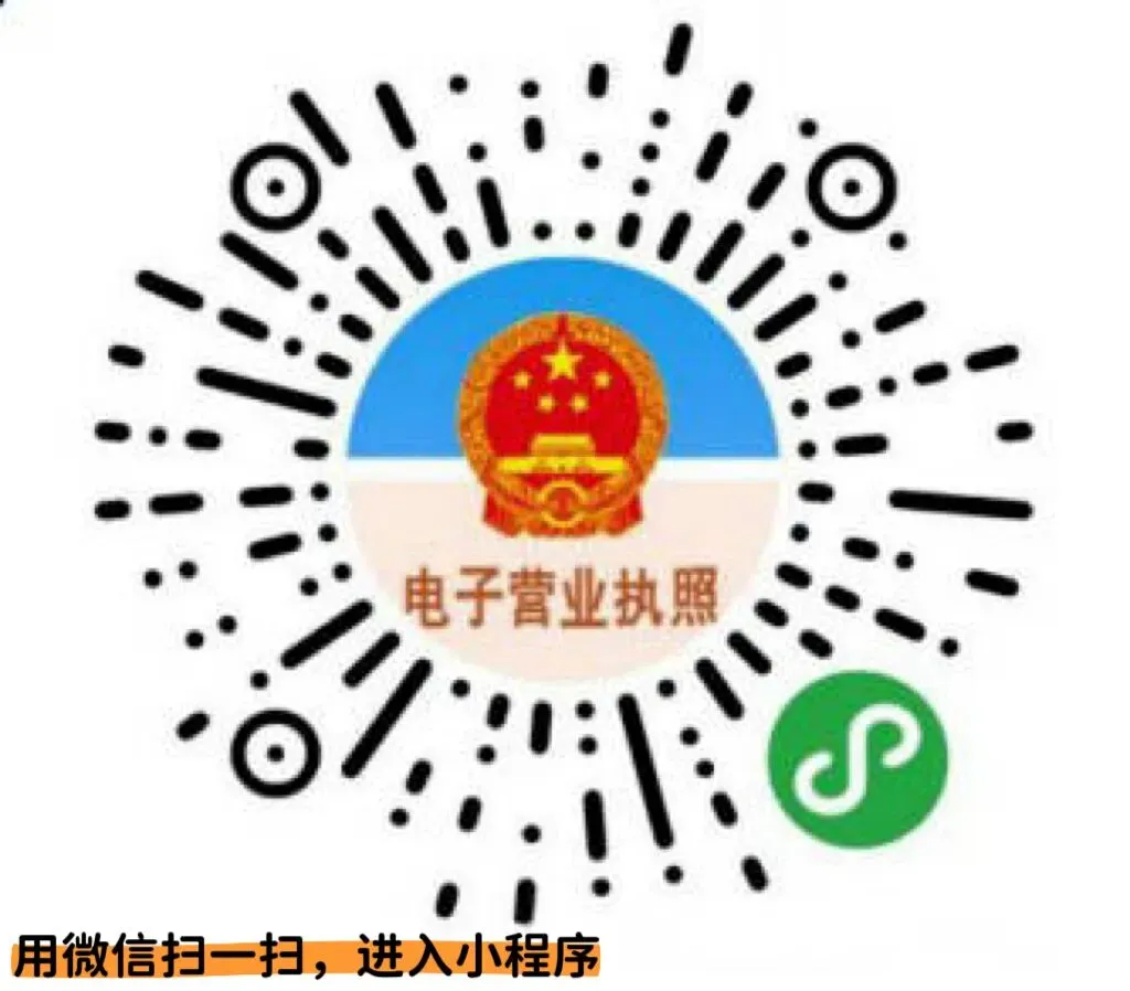用微信或支付宝搜索小程序“电子营业执照”或扫描下方“电子营业执照”二维码进入小程序。