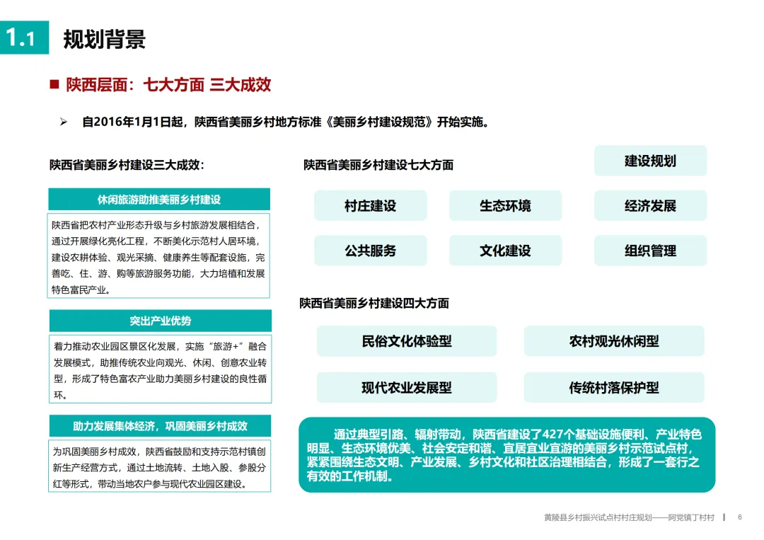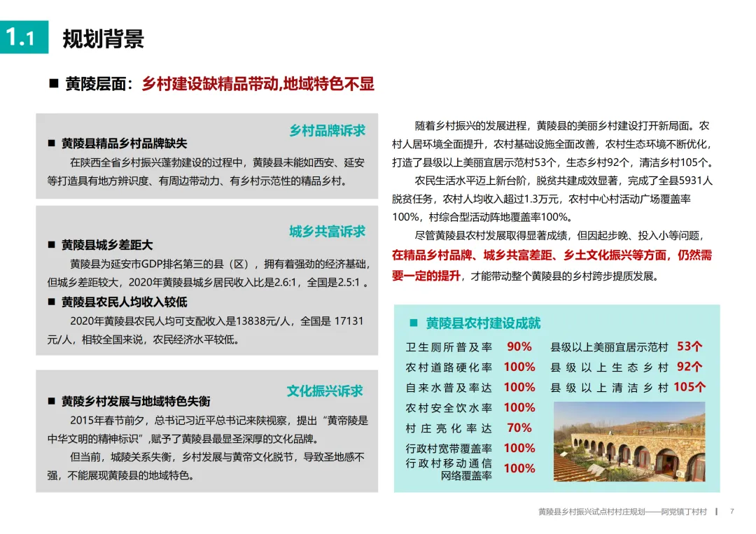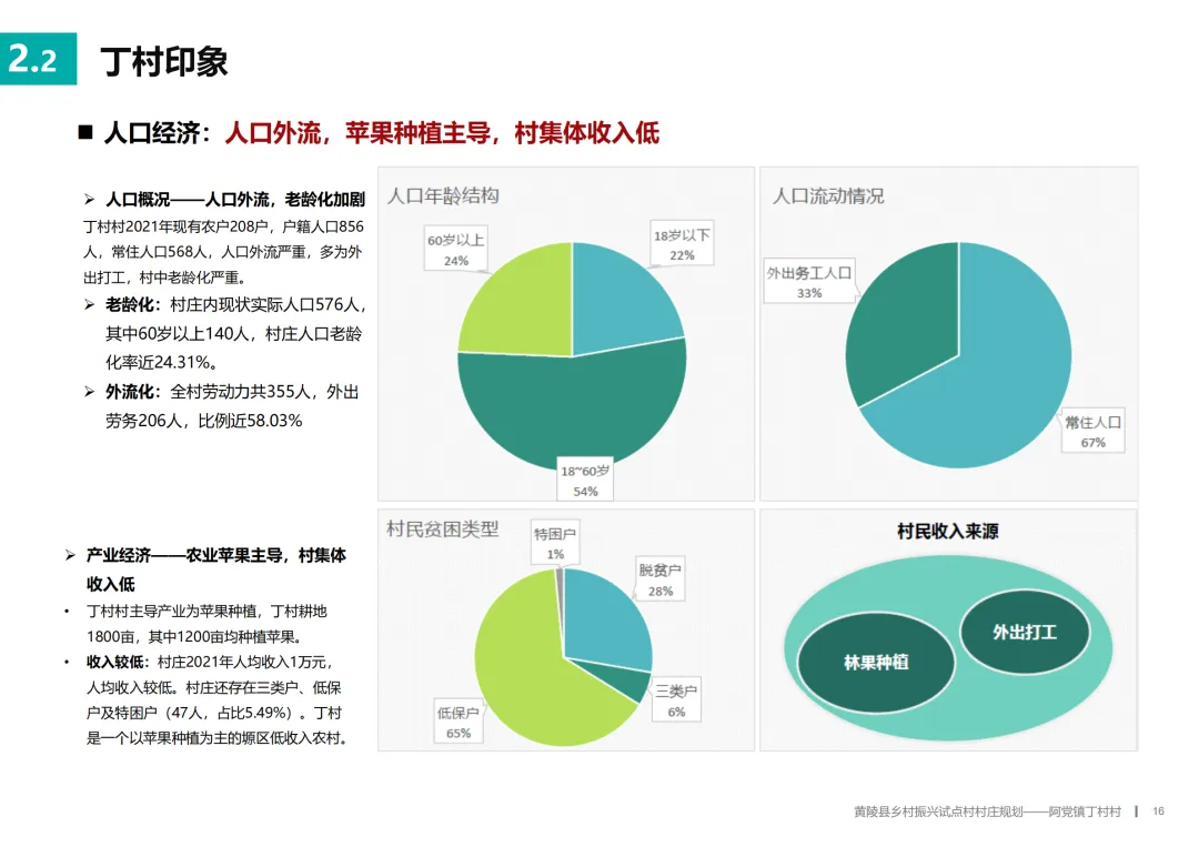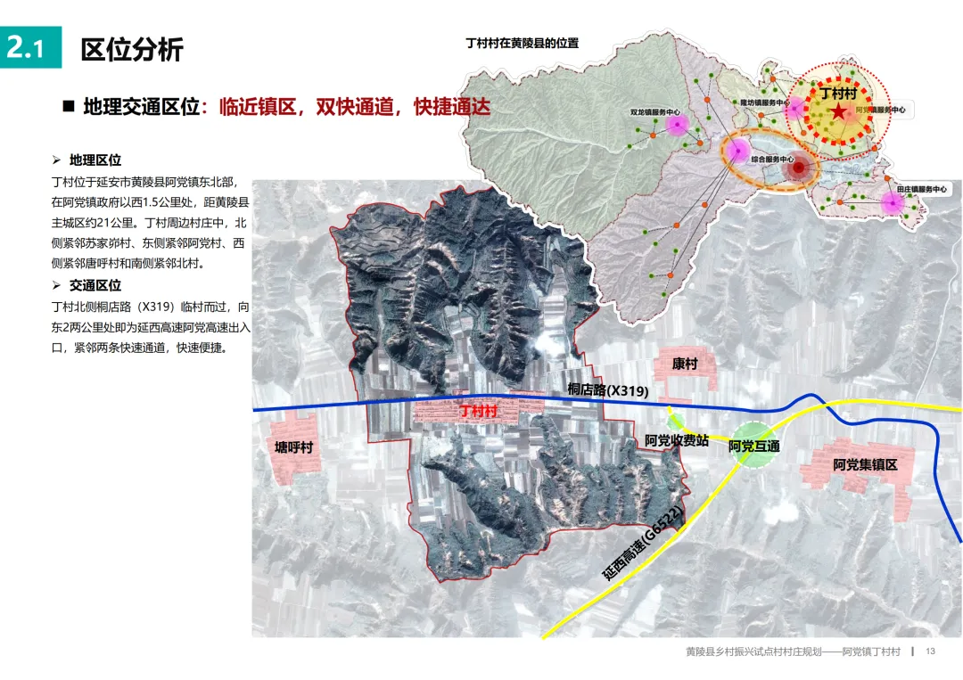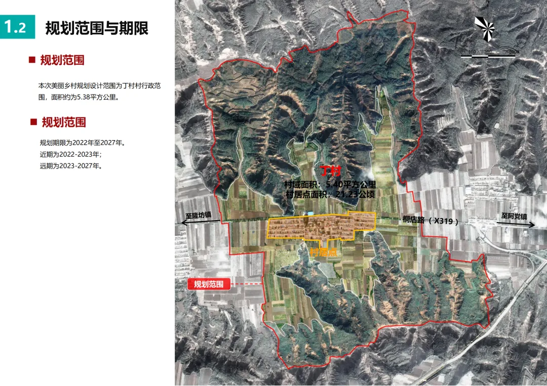 基于深入的调研,规划为丁村确立了“科技兴农·福满丁村”的总定位。其目标是成为阿党镇果畜循环农业的示范点、黄陵县美丽乡村建设的样板,以及关中地区探索共同富裕的乡村实践。