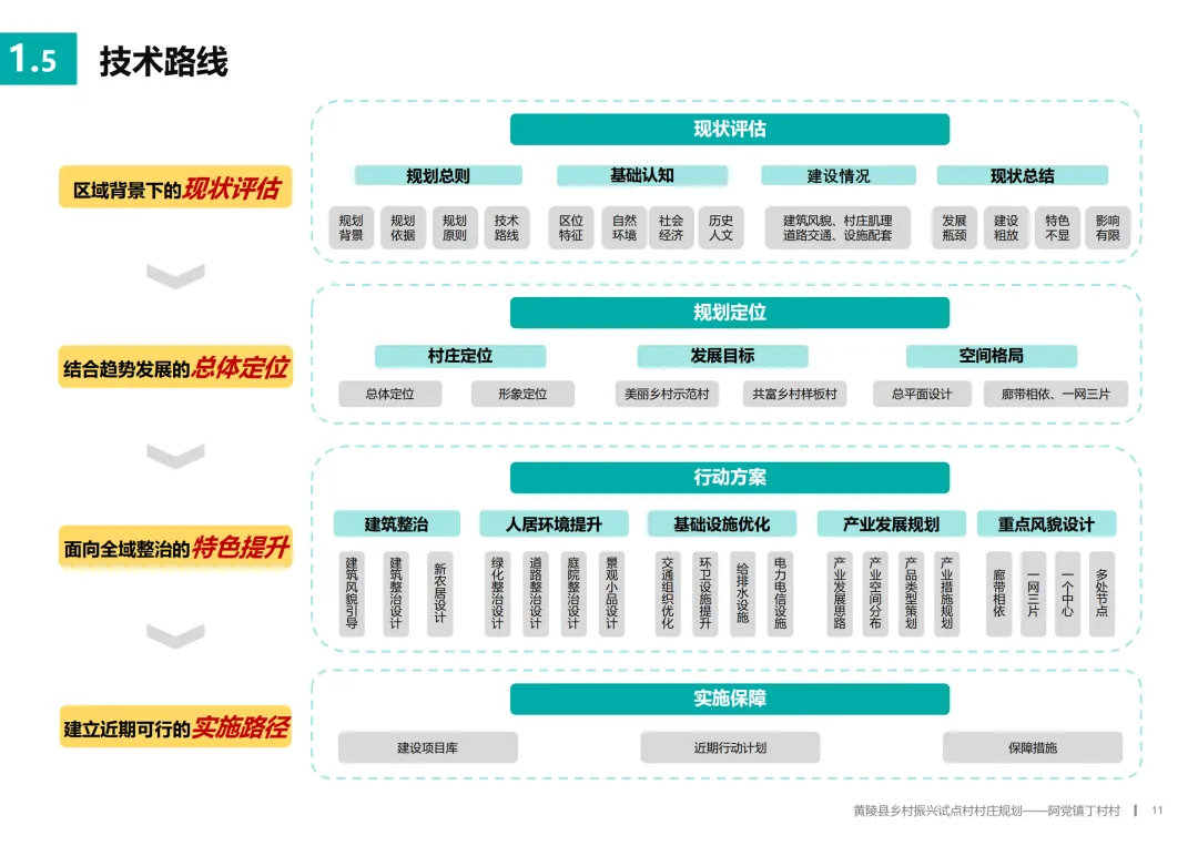 人居环境全面提升。 规划涵盖了从大到小的细致设计:拓宽并硬化主要道路,改造排水沟渠解决积水难题;增加生态停车位;改造提升村委会、卫生室,新建休闲广场、公共厕所;实施垃圾集中分类处理;对建筑立面、庭院围墙进行统一风貌引导和改造;增加村庄照明,布置体现乡土文化的标识与景观小品。