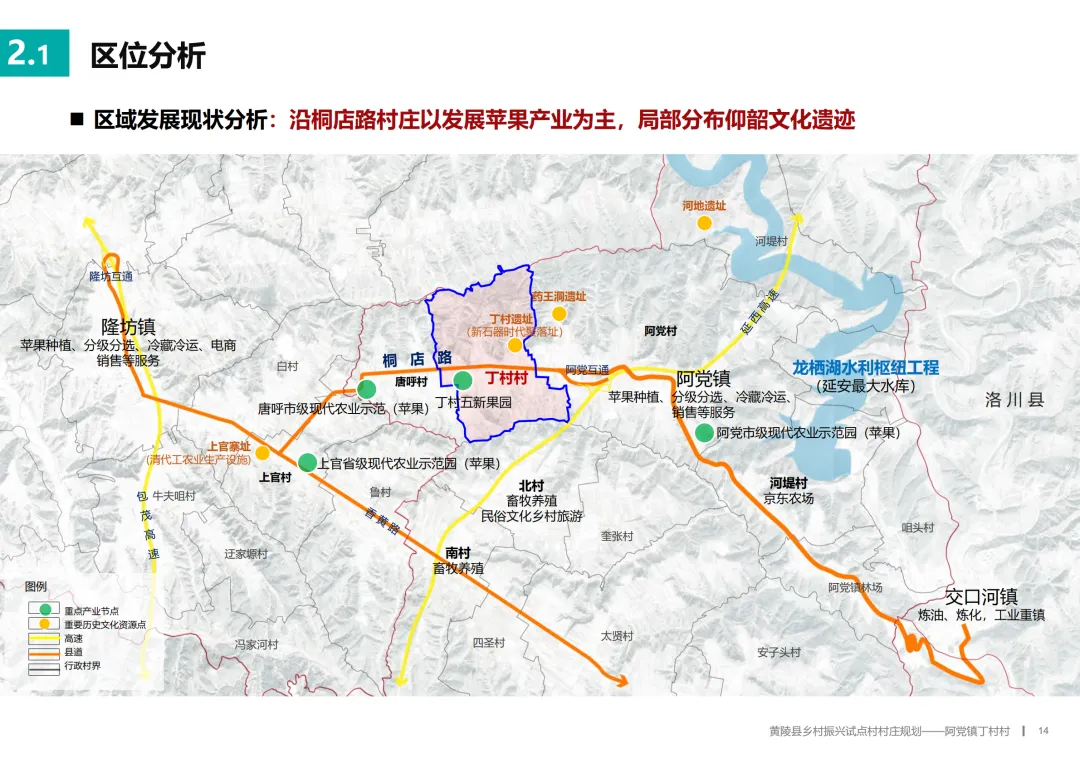 丁村拥有良好的发展基底。对外,它紧邻交通干道,快速连接高速,区位便利;对内,它拥有深厚的文化底蕴,村内发现了新石器时代的“丁村遗址”,仰韶文化、黄帝农耕文明在此留有印记,秦腔、踩高跷等民俗也曾活跃。目前,村庄以苹果种植为主导产业,形成了规模。