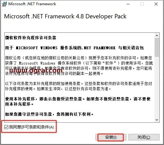Microsoft .NET Framework 4.8 Developer Pack同意勾选,然后点击安装