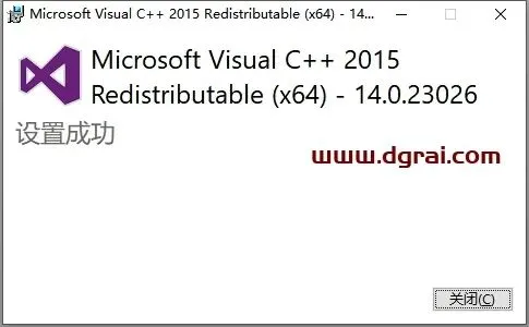 Microsoft Visual C++ 2015安装成功,点击关闭