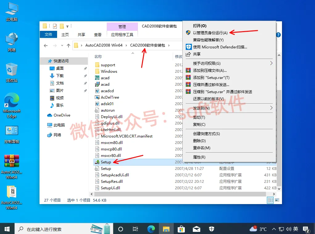 2,进入解压生成的文件夹里面,右键以管理员身份运行Setup安装程序