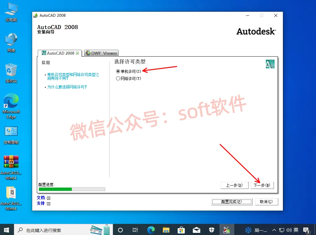 10,选单机许可,点下一步