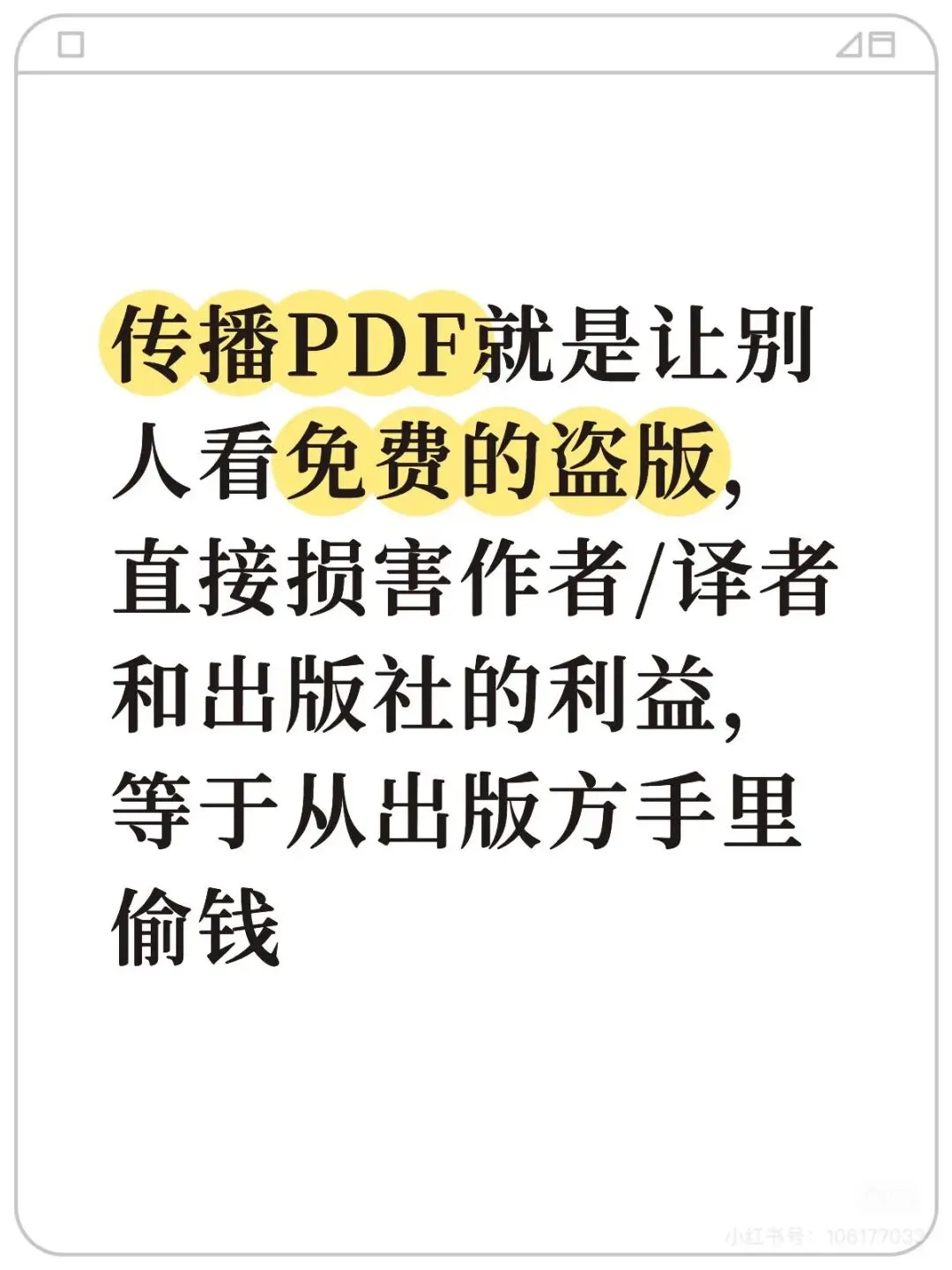 今天小红书又刷到有人说他看书只看PDF,很无语,只看免费的侵权版本还骄傲上了?