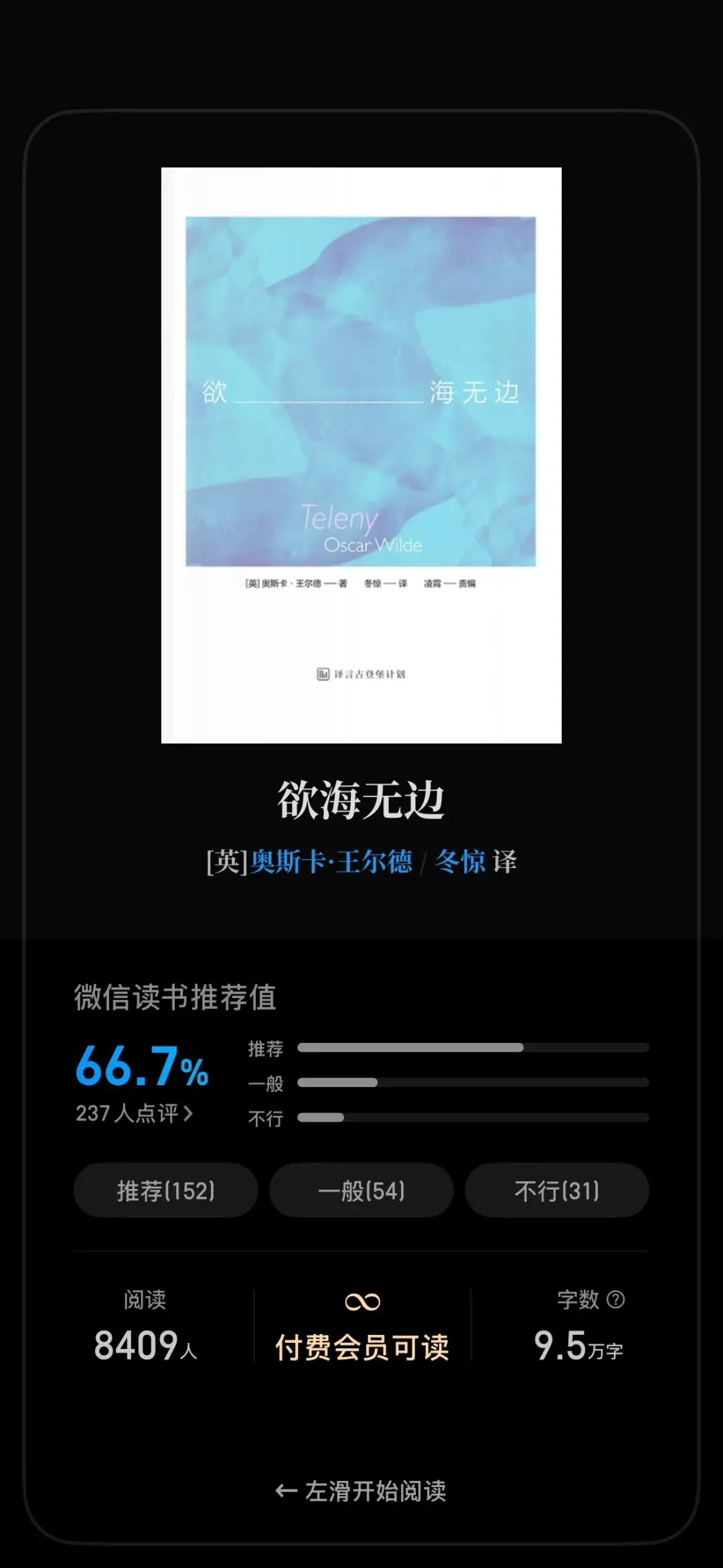 目前我翻译的王尔德《欲海无边》在微信读书就有,这本书只有电子版,没基础稿费,至今所得报酬只有几百块。