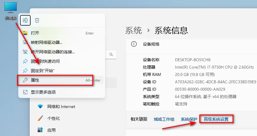 9.在此电脑鼠标右键属性,选择“高级系统设置”