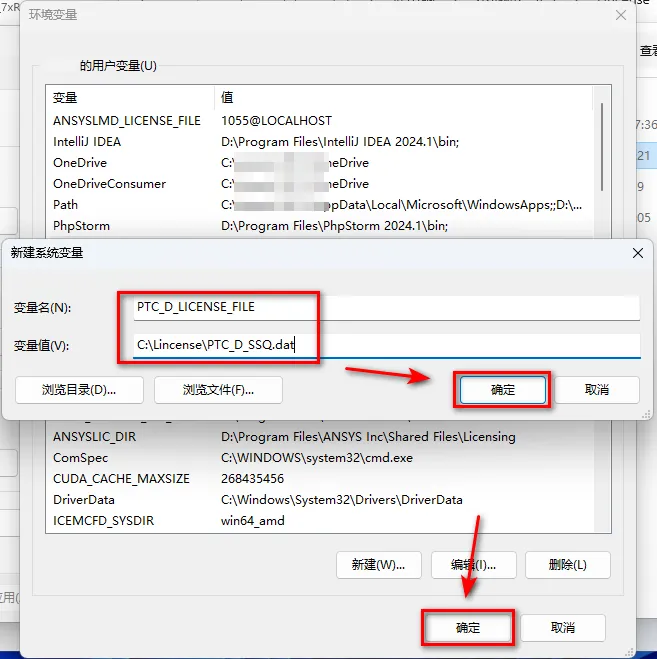 变量值输入:C:\Lincense\PTC_D_SSQ.dat