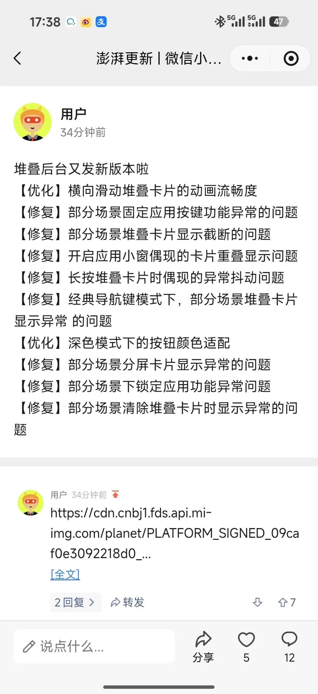 澎湃 OS 正在内测堆叠桌面,此前已经内测了两个版本了,刚刚发布了第三个版本。