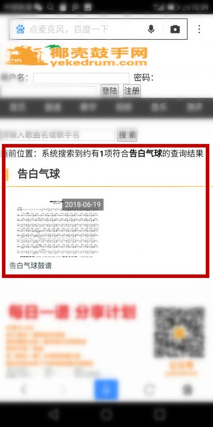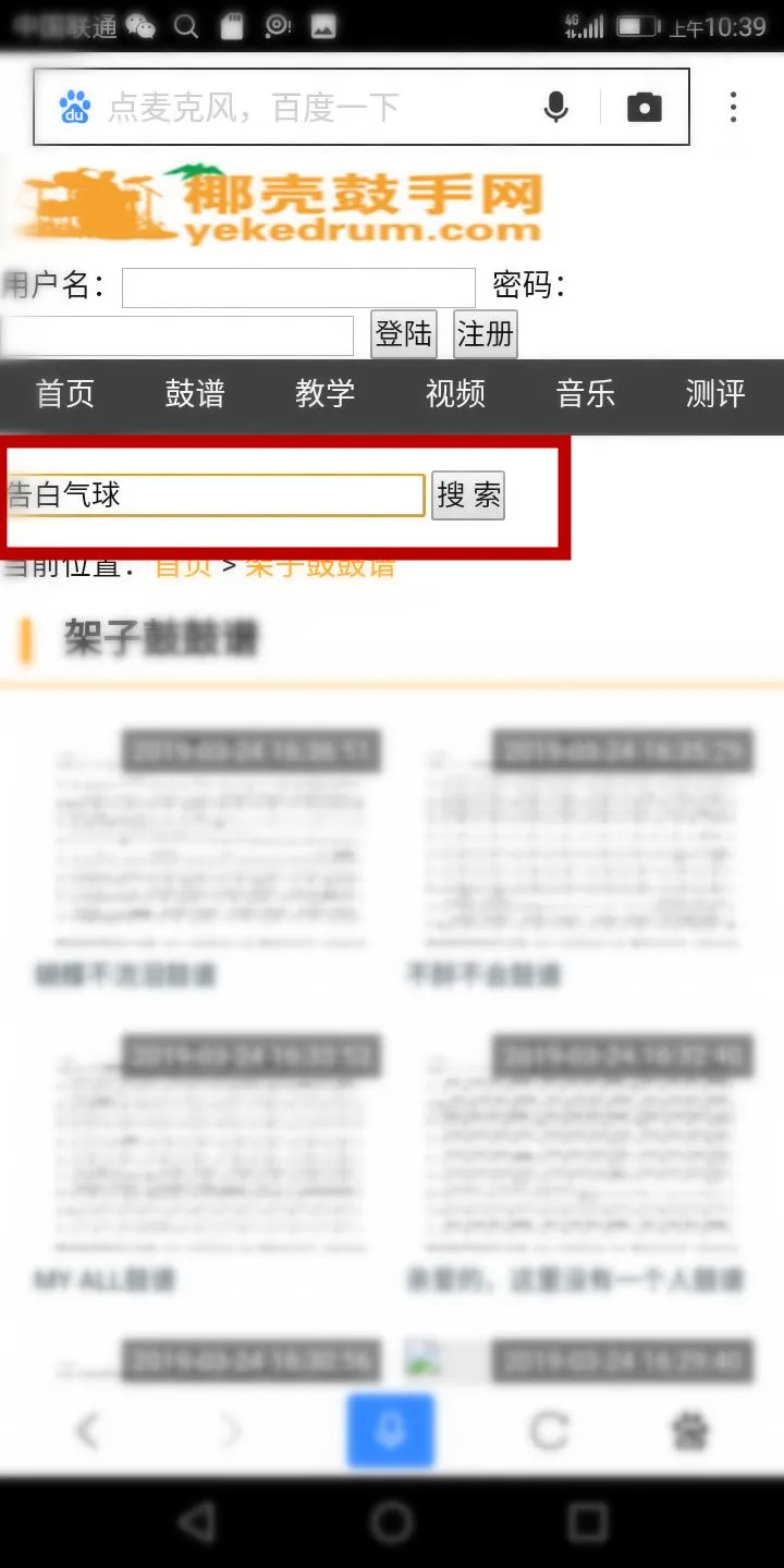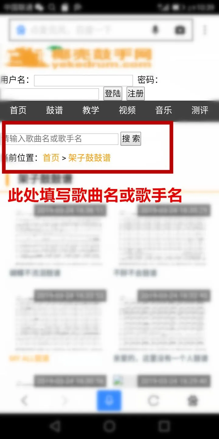 1,同电脑端一样,也是在浏览器打开网站(输入网址m.yekedrum.com或者在搜索引擎搜索椰壳鼓手网进入)