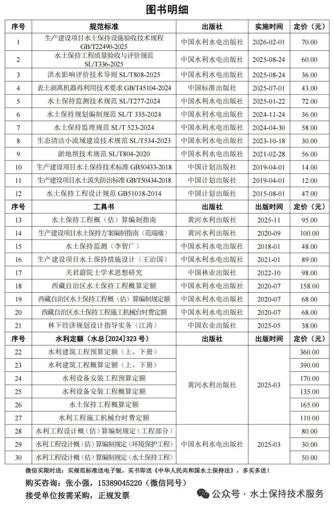 最新水保及相关规范标准购买可添加微信(15389045220),如需要其他水土保持规范或书籍,请添加微信联系或在京东搜索“正源水保专营店