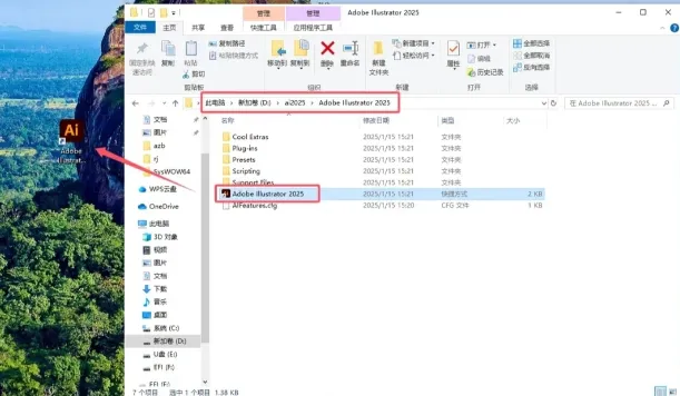 6.生成快捷方式:在软件安装目录位置或电脑开始菜单里面找到Adobe lllustrator 2025,直接拖动到电脑桌面即可生成快捷方式
