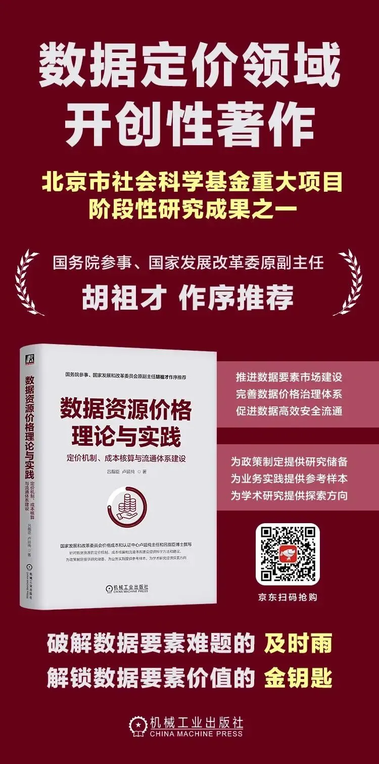核心思路:将原始公共数据与基于其开发的增值服务分离定价。原始数据通常免费或低价开放,而深度加工、分析、定制开发等增值服务则依据其成本和创造的价值单独定价。增值服务的价格上限由其服务价值决定,并在总服务成本(人力、技术、时间)基础上叠加一定比例的利润率来确定。文档也指出该模型可能存在定价透明度风险、垄断性风险和边界模糊风险。其实,公共数据定价的核心在于处理公益与市场的关系。这三种模型提供了不同视角:模型一强调量化社会总效益;模型二强调按用途精细化区分;模型三则通过“基础免费、服务收费”的模式分离公益与市场环节。其共同目标是促进公共数据的合理利用、价值释放和生态可持续发展。《数据要素价值形成规范》只是提供了总体模型和机制框架,但在具体执行定价时,仍然需要根据一系列动态、具体的因素进行深入分析和调整。具体应用场景:数据在不同行业、业务环节下的价值体现差异巨大。市场供需关系:数据的供给量和市场需求量的动态平衡状态。市场与技术成熟度:所在行业数据市场的发展阶段和支撑技术的完善程度。新出的书《数据资源价格理论与实践》里面可能会有实际案例举例,感兴趣可以下单购买阅读。
