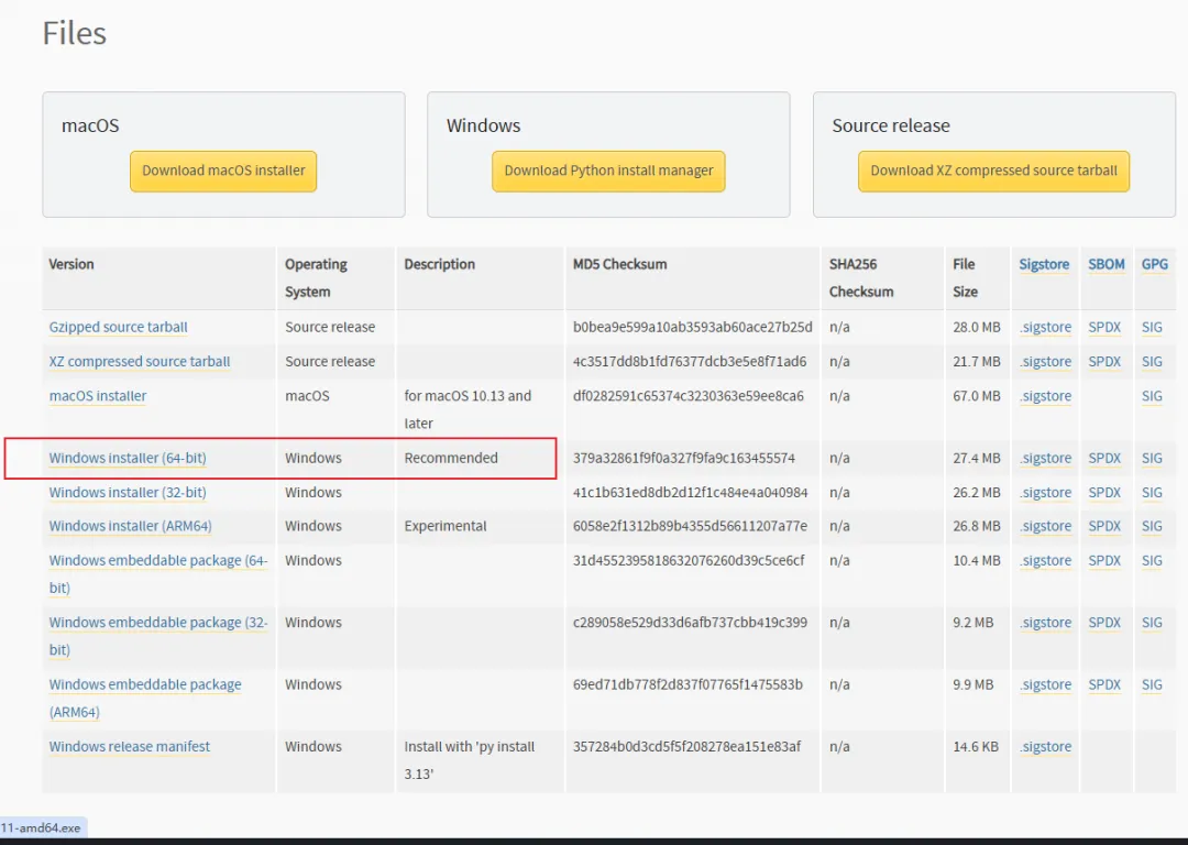 Windows系统:选择"Windows installer (64-bit)"(64位系统)或"Windows installer (32-bit)"(32位系统)