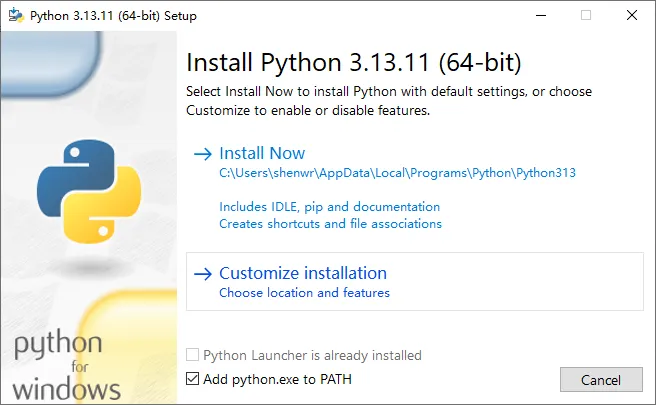 重要!勾选"Add Python to PATH"