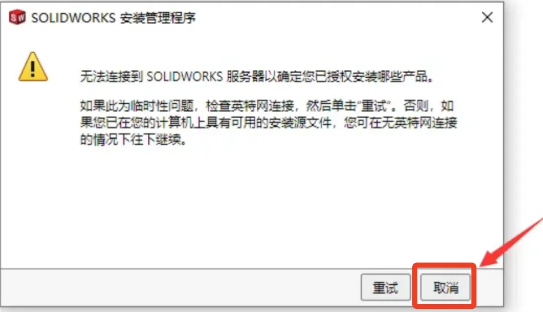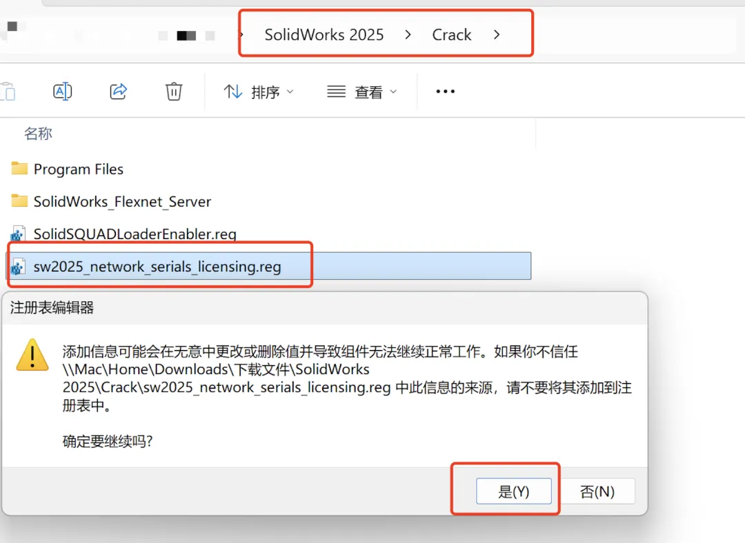 -运行网络文件:双击安装包中的【sw2025_network…】文件,弹出提示点击 “是”,后续提示框点击 “确定”。